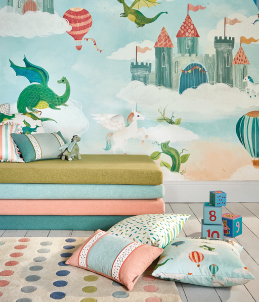Soaring dragons in vibrant shades of blues, greens and aquas, with intricately detailed wings and striking scales create a fun cushion. 50cm x 50cm